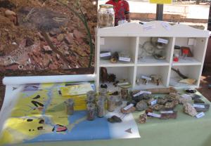 Un stand de sensibilisation au cœur du village à la rencontre d'un géologue et d'un tailleur de pierre pour découvrir les différentes roches que l'on trouve les bâtis.